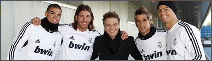 Michel Telo ma a helyszínen tekintette meg a Real Madrid edzését Valdebebasban. A brazil énekes, a világhírű "Ai se eu te Pego" című zene szerzője egy 12-es számmal ellátott mezt kapott ajándékba a csapattól.